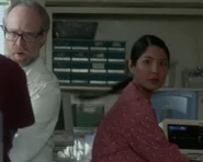 "Lab Coat" responds when Nick Clark's room mate in Temple Hospital, the "Old Man", goes into cardiac arrest. He runs the arrest procedure in Nick's room for one minute (strictly inline with the new protocol described in the WHO memo discussed in Season 1#Events Prior to Season 1), and then has the patient moved "downstairs" to the morgue. He leaves the room ahead of his patient being moved.