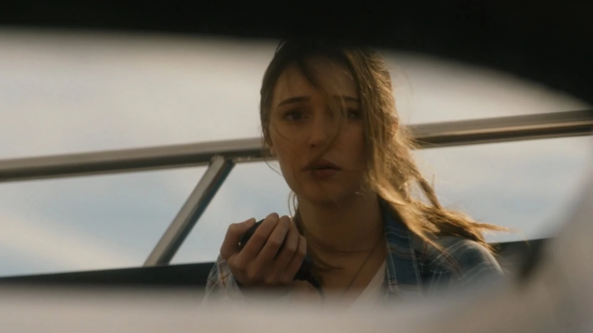 Alicia talks to Jack on the radio, tells him they can't pick him up. "Jack", sounding very calm, says that it's ok and "I got you, I'll see you soon." In the wheelhouse, Strand picks up a fast moving boat heading their way.