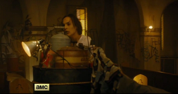 Back in the hospital: Nick wakes from a nightmare to find Travis by his bed. Nick is telling Travis, “I really don’t want to be insane.” He tells Travis what he remembers seeing, including that Gloria "was eating them". Travis is convinced, or concerned, enough to go to the Abandoned Church later that day with a torch. He finds his way in through what looks like the window we saw Nick escape through.