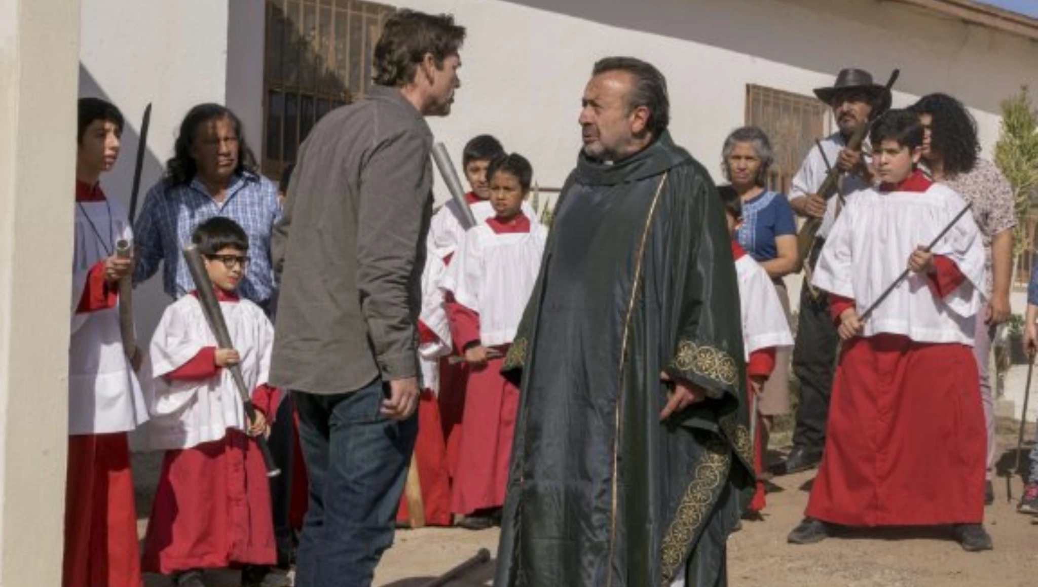 Thomas drives up to a church in Rosarito, Baja California to try and persuade the Parish Priest and his congregation not to go ahead with their planned attack on the compound as it would result in their death. However, both the priest and his congregation have being poisoned via poisoned communion wafer by Celia Flores. Thomas is bitten (offscreen) by one of the infected(likely the priest that he was embracing) and is later comforted by Strand when the group finally arrives at Rosarito, Baja California.