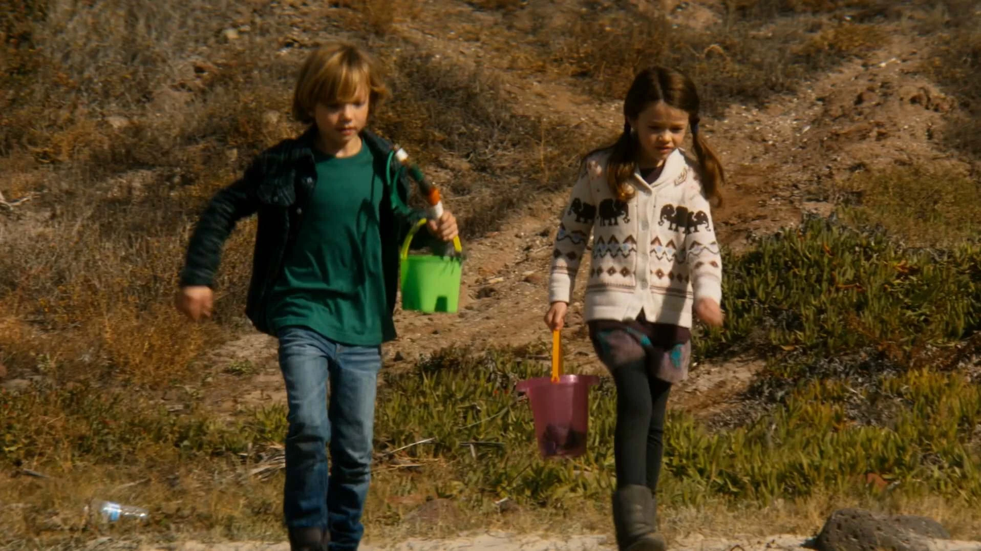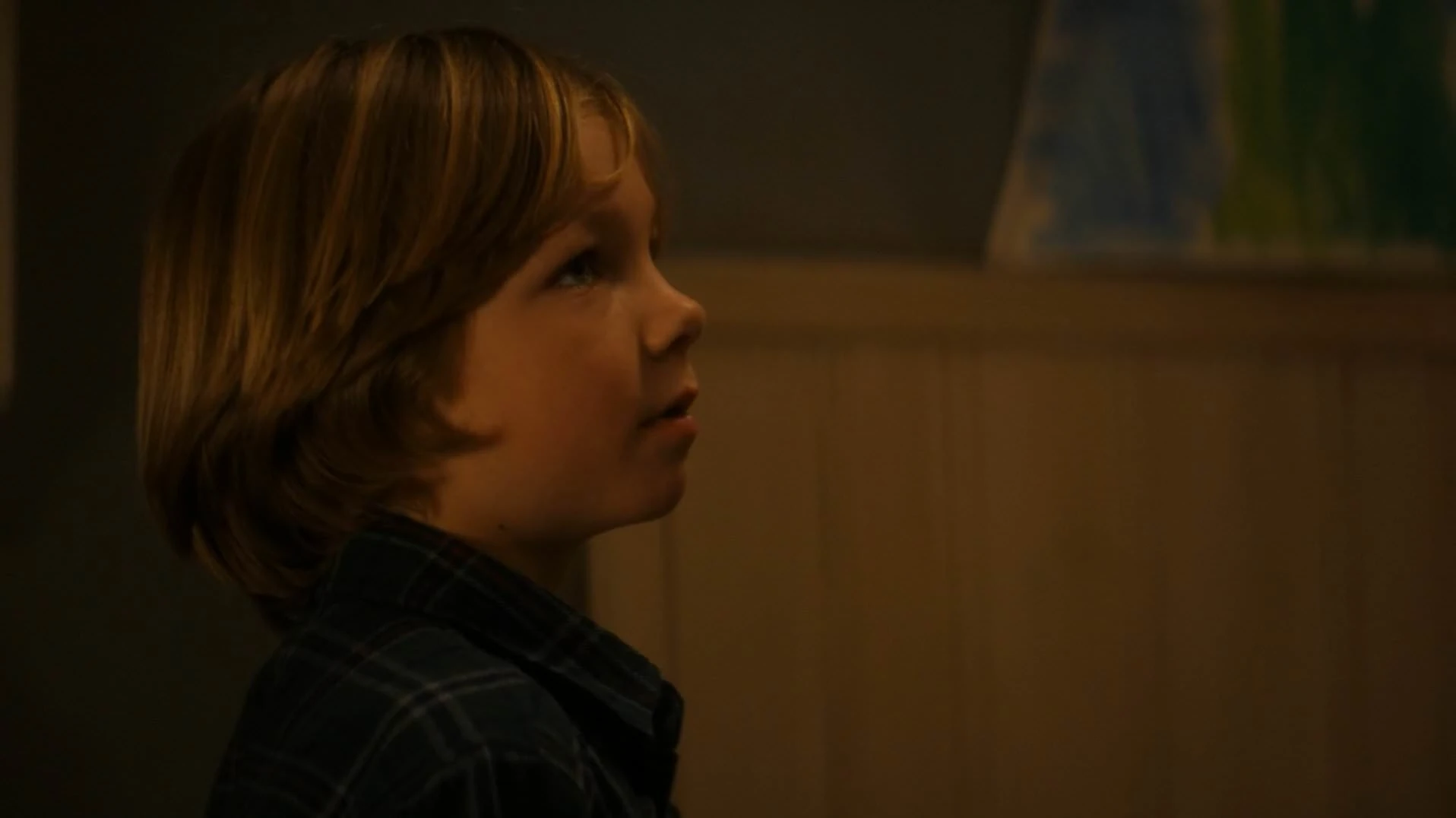 They approach the house which is mostly in darkness now. Travis calls out and a small boy, the boy from the beach, runs out of the front door towards them. A man (George Geary) calls the boy (Harry Geary) back. They introduce themselves and Travis explains they're only here for a little while - and that the Gearys have nothing to fear from them.