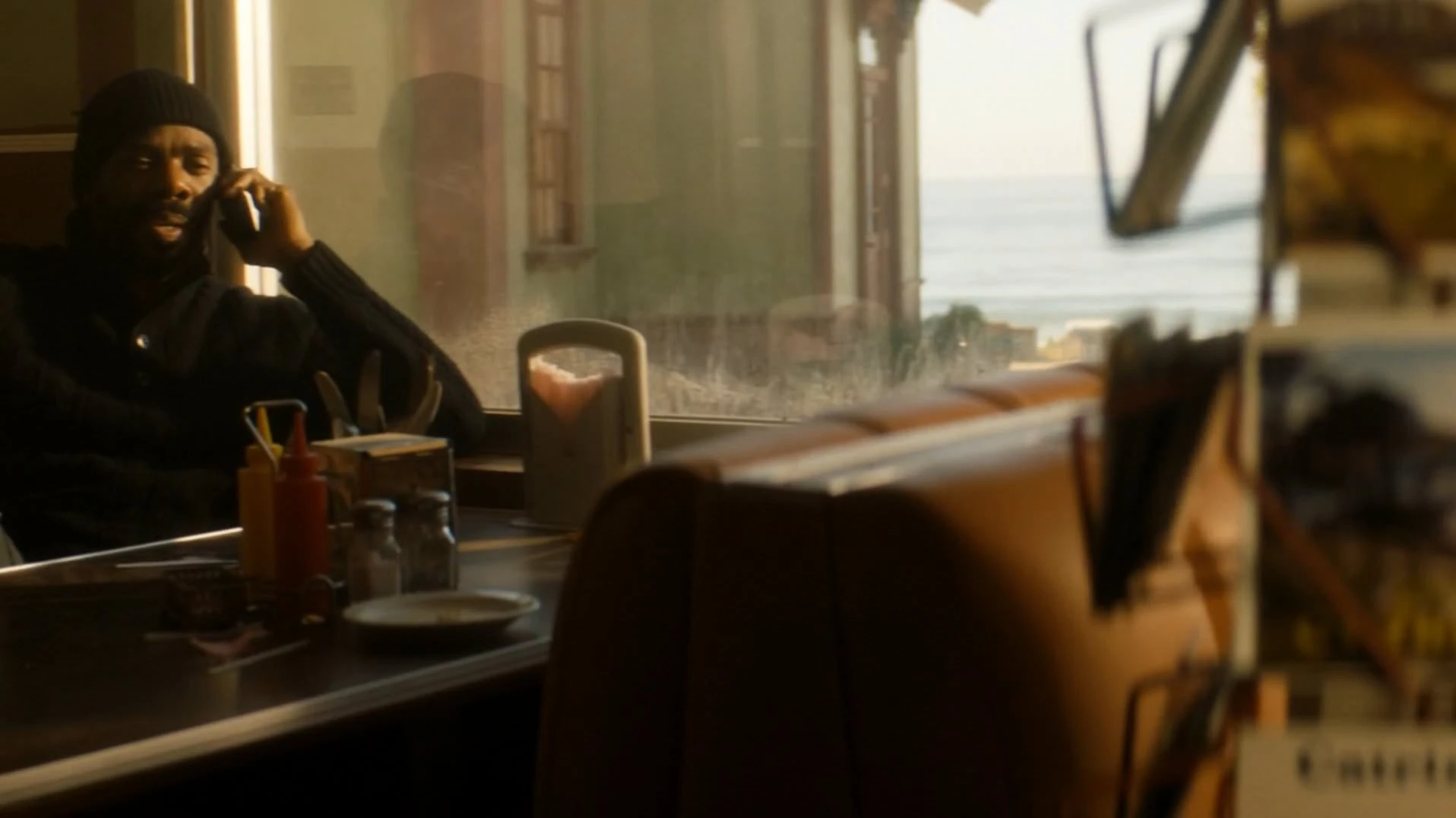 Ashore, in the Cafe Strand is talking on his satellite phone, saying that "it's all clear now". He promises to be "there" by "sundown", and hangs up.